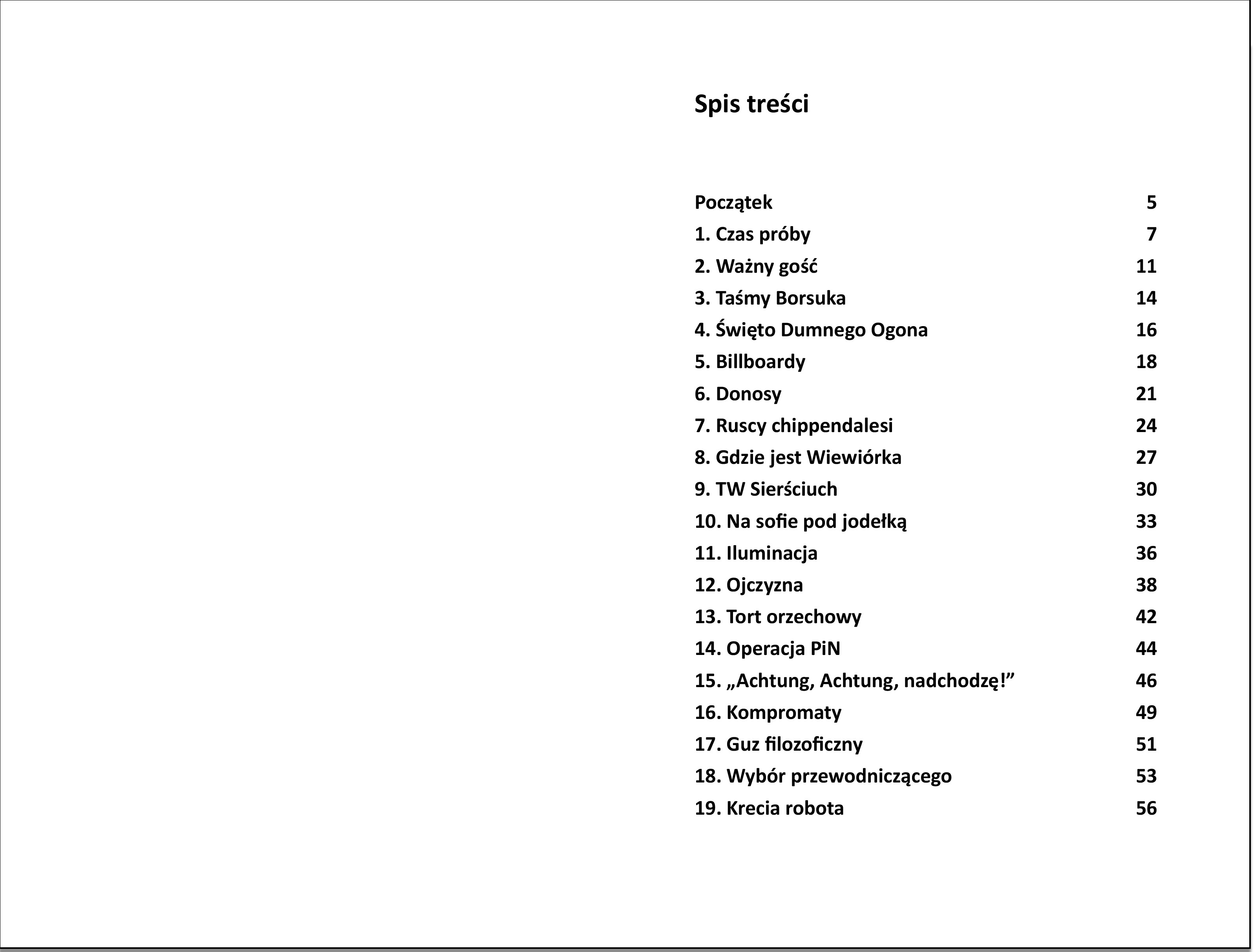 Ktoś kiedyś powiedział, że to, co jest prawdą dziś, okazuje się fałszem jutro. A ja wam powiem, że jeśli tak jest, to tylko dlatego, że ktoś, kurwa, na to pozwala. Nazywają to historią, bawią się w odkrywców i się cieszą, że to, co dziś jest fałszem, okazuje się prawdą jutro, a pojutrze znowu ogłaszają to fałszem… i tak do usr… w nieskończoność. Dlatego nie możemy czekać. Dla nas dzisiaj jest dziś i dzisiaj jest jutro, a nawet pojutrze. Od teraz nie będzie się prawda przepoczwarzać i mnożyć. Złapiemy ją, ściśniemy za gardło i zostanie z nami. – Uniósł łapę do góry, powoli rozczapierzył pazury, po czym szybko je schował.
