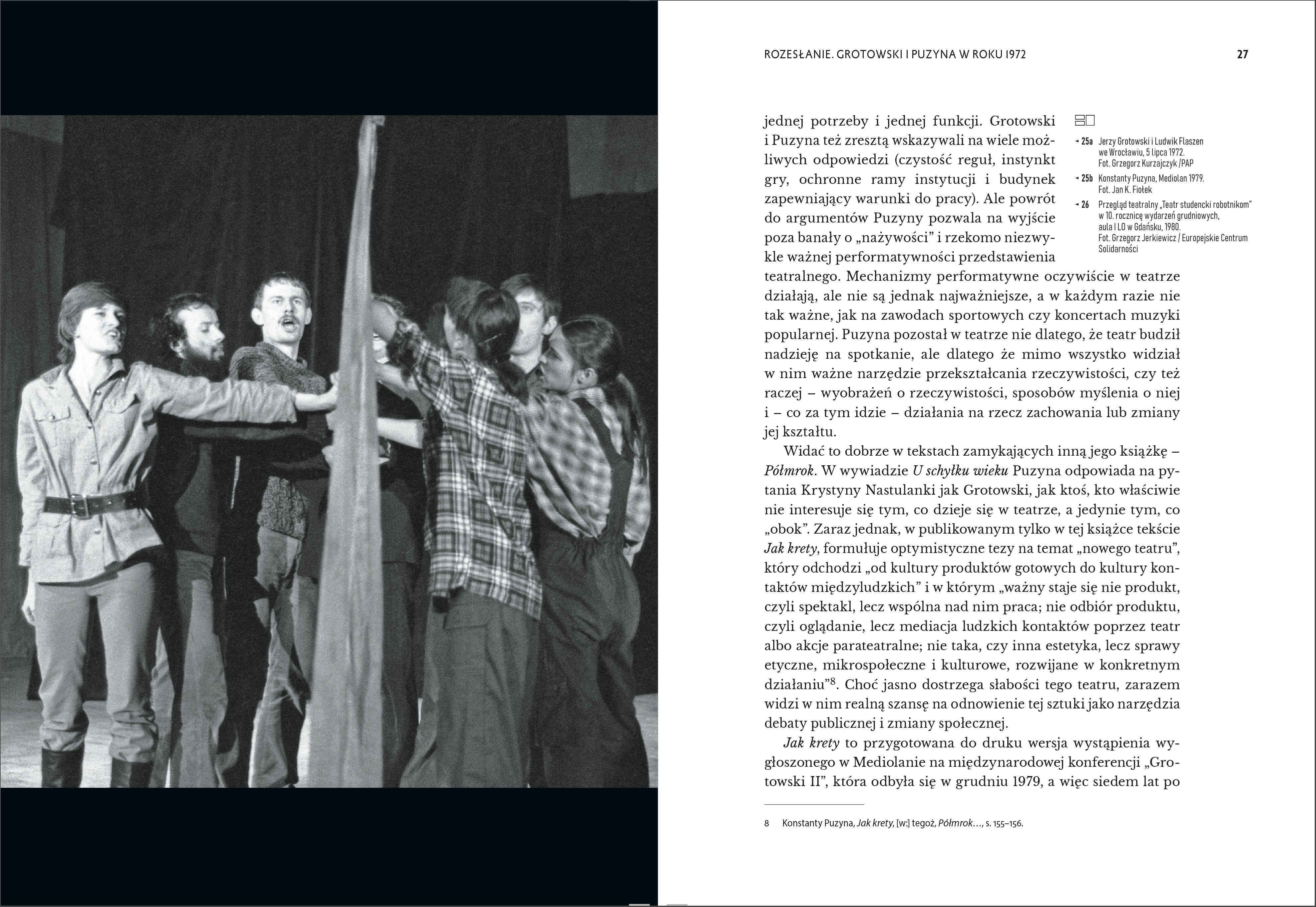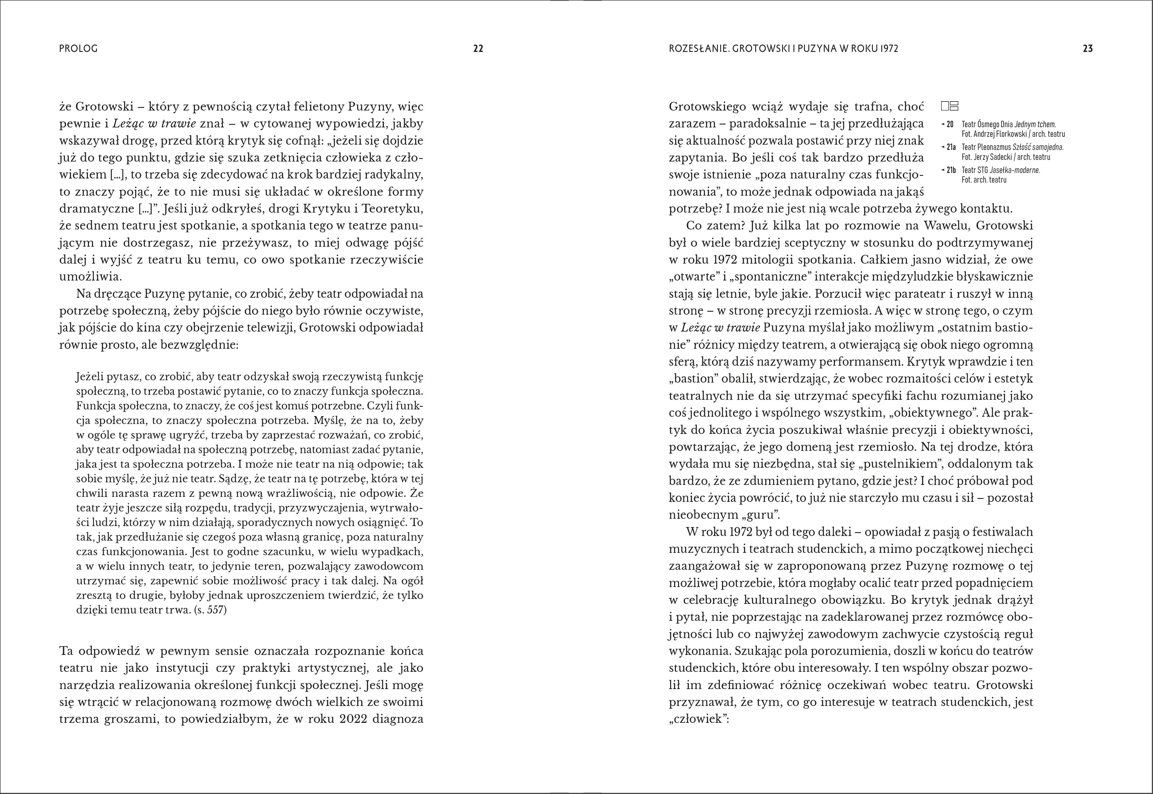Zbiór artykułów i esejów poświęconych najnowszej historii teatru w Polsce. Autor – jako performatyk – zgodnie ze swoimi zainteresowaniami opisuje przedstawienia i zjawiska teatralne w kontekście wydarzeń społecznych i politycznych, uważa bowiem, że: „konflikty teatralne dowodzą, że w ostatnich latach teatr w Polsce stał się szczególnym polem walki o kwestię tak fundamentalną jak wolność wypowiedzi artystycznej w sytuacji, gdy jej wytworzenie jest praktycznie możliwe wyłącznie za publiczne pieniądze, którymi dysponuje władza polityczna – rządowa i samorządowa”. Jako historyka teatru Kosińskiego interesują też przemiany kulturowe, które spowodowały radykalną zmianę konwencji teatralnej, języka, sposobu konstruowania wypowiedzi scenicznej i w związku z tym odmieniły także sposób odbioru i pozycję widzów. Zamiast teatru powołującego i umacniającego wspólnotę mamy dziś spektakle-spotkania: z własną pojedynczością, z nieusuwalną samotnością, z niedającą się delegować na cokolwiek i kogokolwiek odpowiedzialnością za swoje życie. To książka dla każdego czytelnika, nie tylko zainteresowanego szczególnie polskim teatrem. Emocjonalna i angażująca opowieść o najważniejszych dziś sprawach, z którymi mierzy lub powinien mierzyć się każdy.