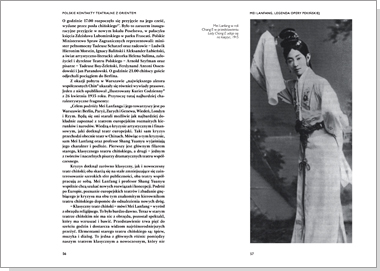 Druga część opracowania poświęconego polskim kontaktom z teatrami azjatyckimi. Część pierwsza zawiera szczegółową kronikę, dokumentującą wizyty twórców i zespołów z Chin, Japonii, Indii czy Indonezji w Polsce. Studia zebrane w niniejszym tomie obejmują takie zagadnienia, jak: polska recepcja opery pekińskiej i japońskiego teatru nō, wizyty zespołów kabuki i współczesnej „opery dziewczęcej” Takarazuka. Szczególnie uważnie przygląda się Zbigniew Osiński temu, jaki stosunek do kultur Orientu miał Jerzy Grotowski i jak jego zainteresowanie Wschodem objawiało się w spektaklach Teatru Laboratorium.