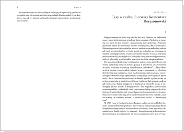 „Niniejsze studium nie jest historią kina. Jest taksonomią, próbą klasyfikacji obrazów i znaków. […] W pierwszej części zajmujemy się obrazem-ruchem i jego odmianami. Obraz-czas będzie przedmiotem drugiej części. Wielkich twórców kina można […] porównywać nie tylko do malarzy i architektów czy muzyków, lecz także do myślicieli. Myślą oni za pomocą obrazów-ruchu i obrazów-czasu, a nie za pomocą pojęć. I niczego w tym nie zmienia ogromny udział szmiry w produkcji filmowej […]. Wielcy twórcy filmowi są jedynie bardziej narażeni, nieskończenie łatwiej przeszkodzić im w realizacji dzieła. Historia kina to długie dzieje męczeństwa. Mimo to kino wpisuje się przecież do historii sztuki i historii myśli za sprawą jedynych w swoim rodzaju, autonomicznych form, na przekór wszystkiemu wymyślonych i przeniesionych na ekran przez twórców.”